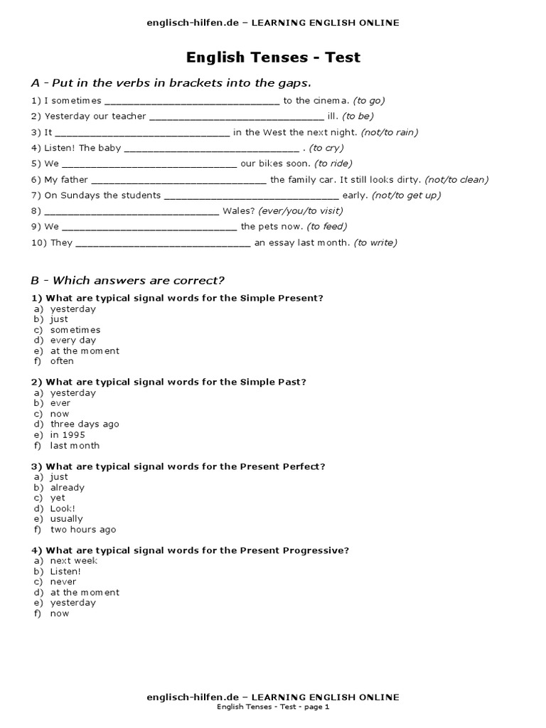 Test Tenses En Pdf Pdf Perfect Grammar English Language